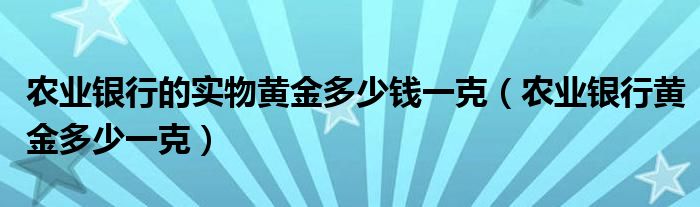 大家好,综合小编来为大家讲解下。农业银行的实物黄金多少钱一克,农业银行黄金多少一克这个很多人还不知道,现在让我们一起来看看吧!