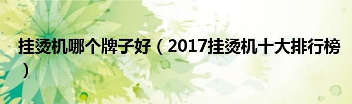 导读 大家好,综合小编来为大家讲解下。挂烫机哪个牌子好,2017挂烫机十大排行榜这个很多人还不知道,现在让我们一起来看看吧!1、常常去买衣服都