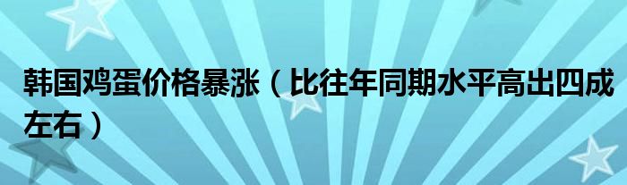 大家好,综合小编来为大家讲解下。韩国鸡蛋价格暴涨,比往年同期水平高出四成左右这个很多人还不知道,现在让我们一起来看看吧!