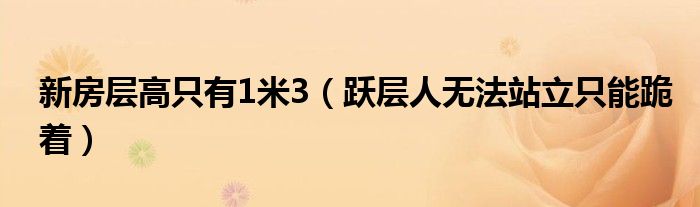 大家好,综合小编来为大家讲解下。新房层高只有1米3,跃层人无法站立只能跪着这个很多人还不知道,现在让我们一起来看看吧!