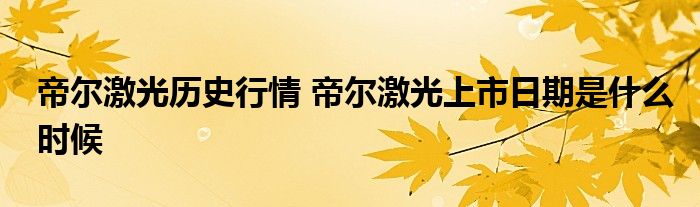 导读 大家好,小元来为大家解答问题。帝尔激光历史行情,帝尔激光上市日期是什么时候这个很多人还不知道,现在让我们一起来了解下吧!