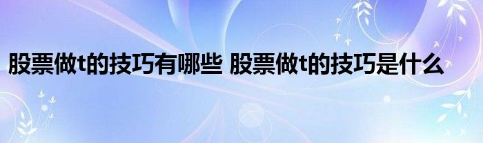 导读 大家好,小元来为大家解答问题。股票做t的技巧有哪些,股票做t的技巧是什么,这个很多人还不知道,现在让我们一起来了解下吧!