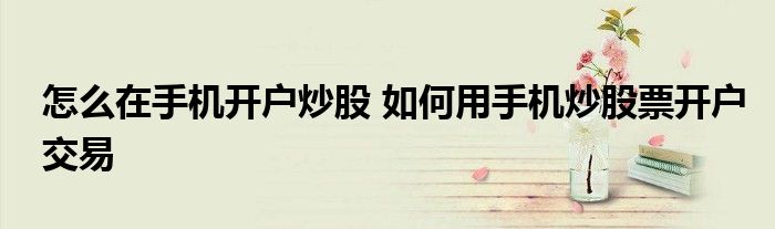 导读 大家好,小元来为大家解答问题。怎么在手机开户炒股,如何用手机炒股票开户交易,这个很多人还不知道,现在让我们一起来了解下吧!