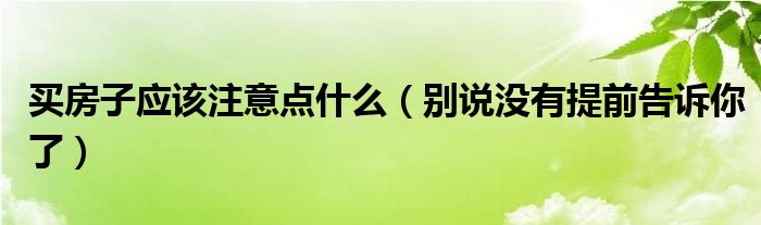 导读 大家好,综合小编来为大家讲解下。买房子应该注意点什么,别说没有提前告诉你了这个很多人还不知道,现在让我们一起来看看吧!1、买房子是一
