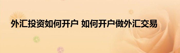 导读 大家好,小元来为大家解答问题。外汇投资如何开户,如何开户做外汇交易,这个很多人还不知道,现在让我们一起来了解下吧!