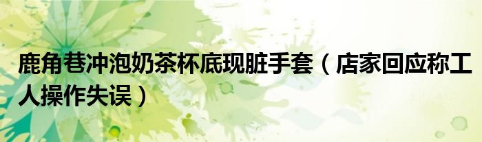 大家好,综合小编来为大家讲解下。鹿角巷冲泡奶茶杯底现脏手套,店家回应称工人操作失误这个很多人还不知道,现在让我们一起来看看吧!