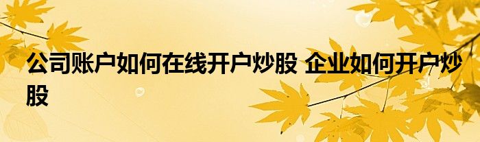 导读 大家好,小元来为大家解答问题。公司账户如何在线开户炒股,企业如何开户炒股,这个很多人还不知道,现在让我们一起来了解下吧!