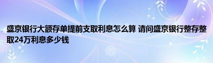 导读 大家好,小呗来为大家解答以上的问题盛京银行大额存单提前支取利息怎么算,请问盛京银行整存整取24万利息多少钱这个很多人还不知道,现在让我