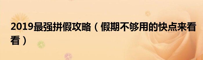 大家好,综合小编来为大家讲解下。2019最强拼假攻略,假期不够用的快点来看看这个很多人还不知道,现在让我们一起来看看吧!