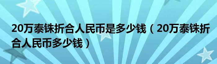 导读 大家好,综合小编来为大家讲解下。20万泰铢折合人民币是多少钱,20万泰铢折合人民币多少钱这个很多人还不知道,现在让我们一起来看看吧!1、
