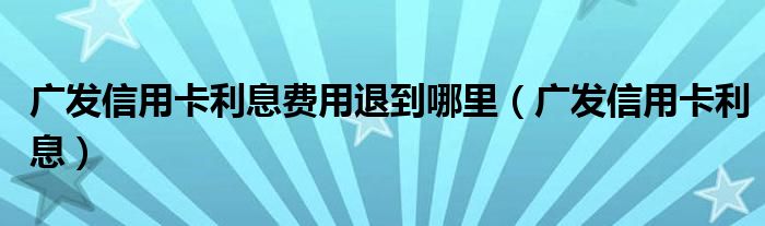大家好,小卡来为大家解答以上问题。广发信用卡利息费用退到哪里,广发信用卡利息很多人还不知道,现在让我们一起来看看吧!