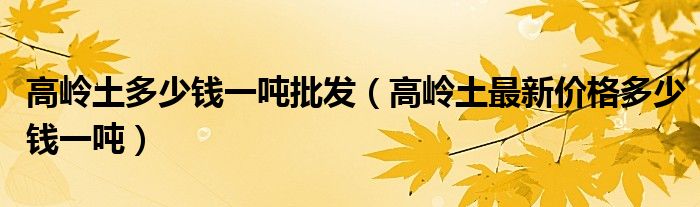 导读 大家好,综合小编来为大家讲解下。高岭土多少钱一吨批发,高岭土最新价格多少钱一吨这个很多人还不知道,现在让我们一起来看看吧!1、你好,