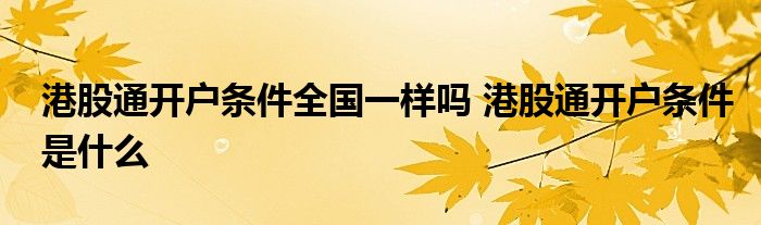 导读 大家好,小元来为大家解答问题。港股通开户条件全国一样吗,港股通开户条件是什么这个很多人还不知道,现在让我们一起来了解下吧!