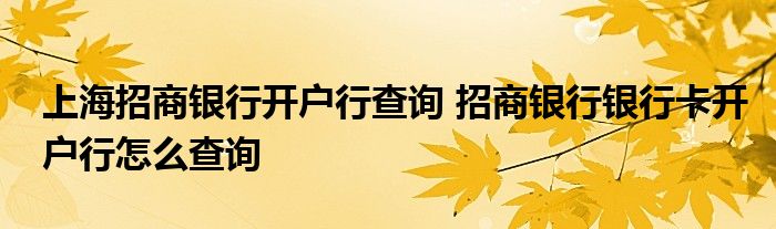 导读 大家好,小元来为大家解答问题。上海招商银行开户行查询,招商银行银行卡开户行怎么查询,这个很多人还不知道,现在让我们一起来了解下吧!