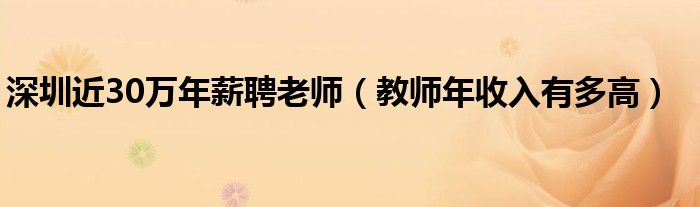 大家好,综合小编来为大家讲解下。深圳近30万年薪聘老师,教师年收入有多高这个很多人还不知道,现在让我们一起来看看吧!