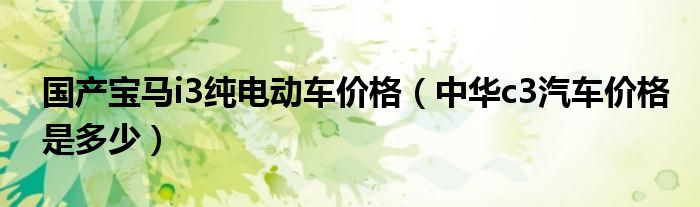 大家好,综合小编来为大家讲解下。国产宝马i3纯电动车价格,中华c3汽车价格是多少这个很多人还不知道,现在让我们一起来看看吧!
