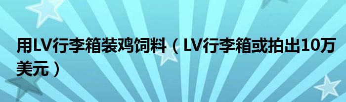 大家好,综合小编来为大家讲解下。用LV行李箱装鸡饲料,LV行李箱或拍出10万美元这个很多人还不知道,现在让我们一起来看看吧!