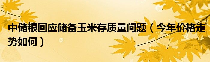 大家好,综合小编来为大家讲解下。中储粮回应储备玉米存质量问题,今年价格走势如何这个很多人还不知道,现在让我们一起来看看吧!
