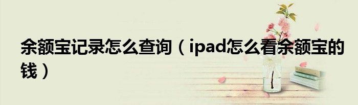 大家好,综合小编来为大家讲解下。余额宝记录怎么查询,ipad怎么看余额宝的钱这个很多人还不知道,现在让我们一起来看看吧!