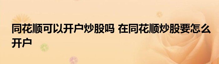 导读 大家好,小元来为大家解答问题。同花顺可以开户炒股吗,在同花顺炒股要怎么开户,这个很多人还不知道,现在让我们一起来了解下吧!