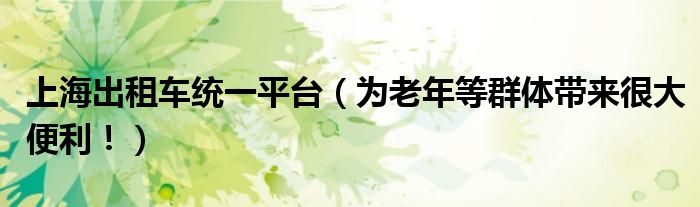 大家好,综合小编来为大家讲解下。上海出租车统一平台,为老年等群体带来很大便利!这个很多人还不知道,现在让我们一起来看看吧!