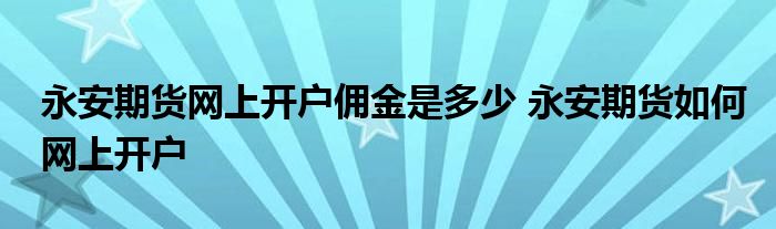 大家好,小元来为大家解答问题。永安期货网上开户佣金是多少,永安期货如何网上开户,这个很多人还不知道,现在让我们一起来了解下吧!