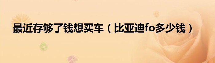 大家好,综合小编来为大家讲解下。最近存够了钱想买车,比亚迪fo多少钱这个很多人还不知道,现在让我们一起来看看吧!