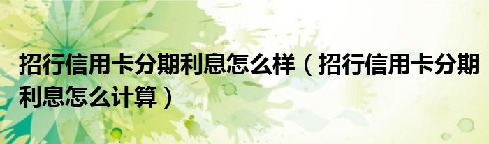 导读 大家好,综合小编来为大家讲解下。招行信用卡分期利息怎么样,招行信用卡分期利息怎么计算这个很多人还不知道,现在让我们一起来看看吧!1、