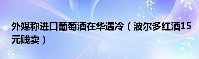 大家好,综合小编来为大家讲解下。外媒称进口葡萄酒在华遇冷,波尔多红酒15元贱卖这个很多人还不知道,现在让我们一起来看看吧!