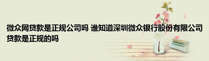 导读 大家好,小元来为大家解答问题。微众网贷款是正规公司吗,谁知道深圳微众银行股份有限公司贷款是正规的吗,这个很多人还不知道,现在让我们