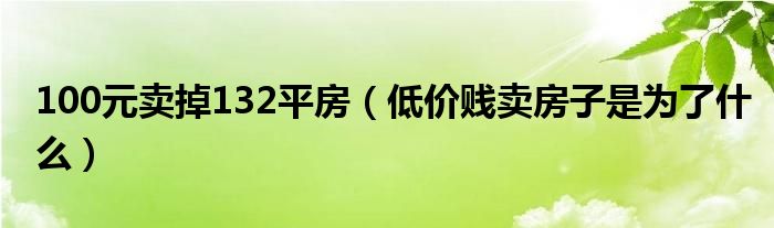 大家好,综合小编来为大家讲解下。100元卖掉132平房,低价贱卖房子是为了什么这个很多人还不知道,现在让我们一起来看看吧!