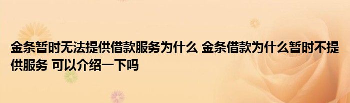 导读 大家好,小呗来为大家解答以上的问题金条暂时无法提供借款服务为什么,金条借款为什么暂时不提供服务,可以介绍一下吗这个很多人还不知道,现