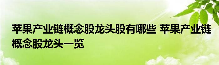 导读 大家好,小元来为大家解答问题。苹果产业链概念股龙头股有哪些,苹果产业链概念股龙头一览,这个很多人还不知道,现在让我们一起来了解下吧