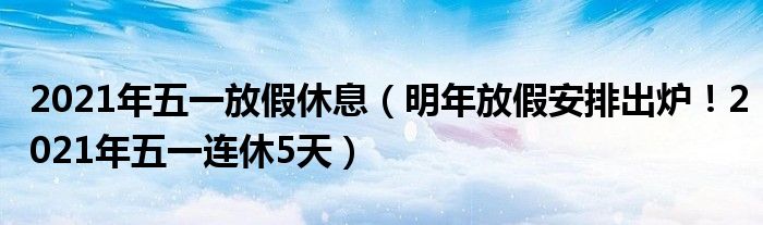 导读 大家好,综合小编来为大家讲解下。2021年五一放假休息,明年放假安排出炉!2021年五一连休5天这个很多人还不知道,现在让我们一起来看看吧!1