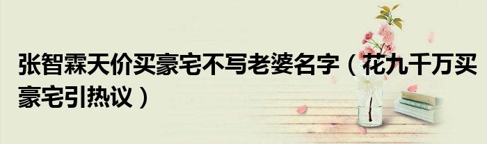 大家好,综合小编来为大家讲解下。张智霖天价买豪宅不写老婆名字,花九千万买豪宅引热议这个很多人还不知道,现在让我们一起来看看吧!