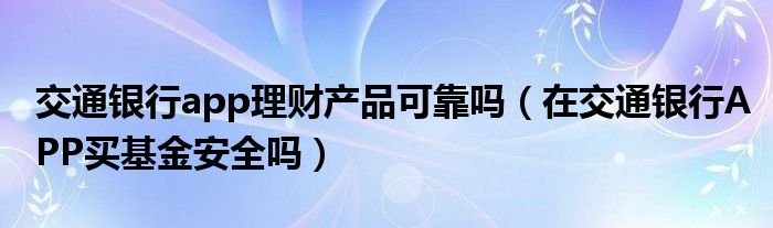 大家好,综合小编来为大家讲解下。交通银行app理财产品可靠吗,在交通银行APP买基金安全吗这个很多人还不知道,现在让我们一起来看看吧!