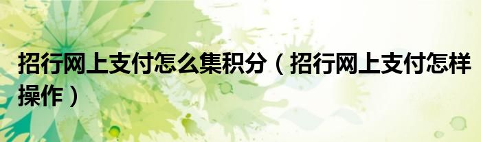 大家好,综合小编来为大家讲解下。招行网上支付怎么集积分,招行网上支付怎样操作这个很多人还不知道,现在让我们一起来看看吧!