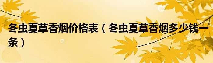 导读 大家好,综合小编来为大家讲解下。冬虫夏草香烟价格表,冬虫夏草香烟多少钱一条这个很多人还不知道,现在让我们一起来看看吧!1、我们大家都