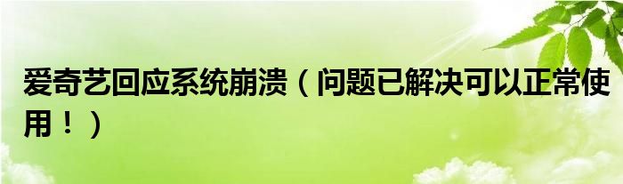 大家好,综合小编来为大家讲解下。爱奇艺回应系统崩溃,问题已解决可以正常使用!这个很多人还不知道,现在让我们一起来看看吧!