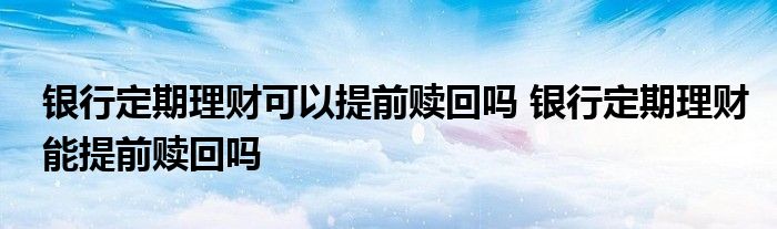 导读 大家好,小呗来为大家解答以上的问题银行定期理财可以提前赎回吗,银行定期理财能提前赎回吗这个很多人还不知道,现在让我们一起来了解下吧!