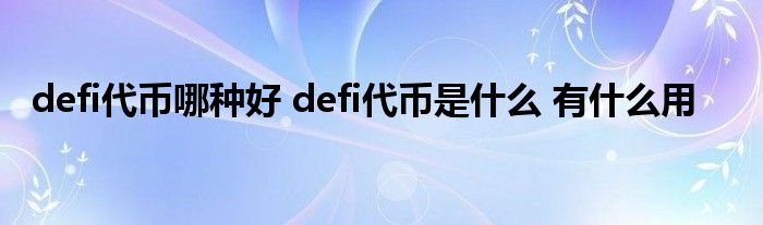 导读 大家好,小呗来为大家解答以上的问题defi代币哪种好,defi代币是什么,有什么用这个很多人还不知道,现在让我们一起来了解下吧!