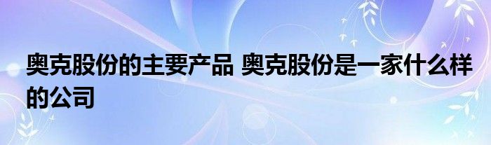 导读 大家好,小元来为大家解答问题。奥克股份的主要产品,奥克股份是一家什么样的公司,这个很多人还不知道,现在让我们一起来了解下吧!