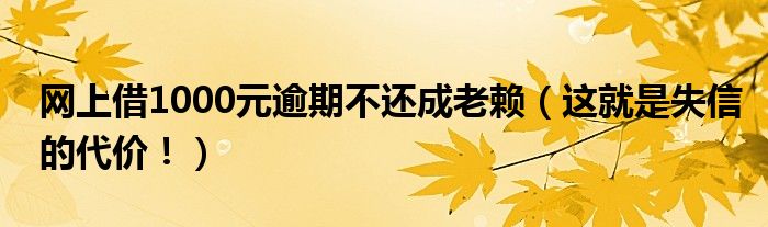 大家好,综合小编来为大家讲解下。网上借1000元逾期不还成老赖,这就是失信的代价!这个很多人还不知道,现在让我们一起来看看吧!