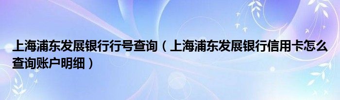 导读 大家好,综合小编来为大家讲解下。上海浦东发展银行行号查询,上海浦东发展银行信用卡怎么查询账户明细这个很多人还不知道,现在让我们一起来