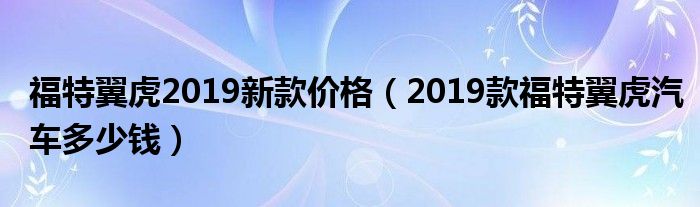大家好,综合小编来为大家讲解下。福特翼虎2019新款价格,2019款福特翼虎汽车多少钱这个很多人还不知道,现在让我们一起来看看吧!