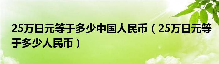 大家好,综合小编来为大家讲解下。25万日元等于多少中国人民币,25万日元等于多少人民币这个很多人还不知道,现在让我们一起来看看吧!
