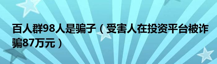 大家好,综合小编来为大家讲解下。百人群98人是骗子,受害人在投资平台被诈骗87万元这个很多人还不知道,现在让我们一起来看看吧!