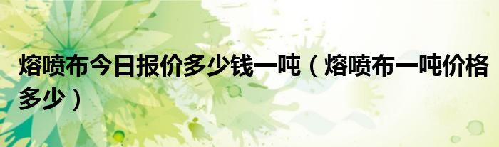 大家好,综合小编来为大家讲解下。熔喷布今日报价多少钱一吨,熔喷布一吨价格多少这个很多人还不知道,现在让我们一起来看看吧!