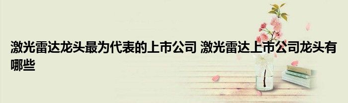 导读 大家好,小元来为大家解答问题。激光雷达龙头最为代表的上市公司,激光雷达上市公司龙头有哪些这个很多人还不知道,现在让我们一起来了解下