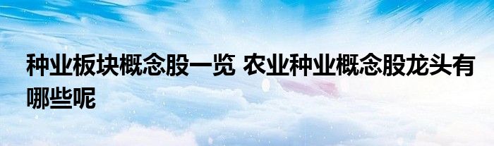 导读 大家好,小元来为大家解答问题。种业板块概念股一览,农业种业概念股龙头有哪些呢这个很多人还不知道,现在让我们一起来了解下吧!